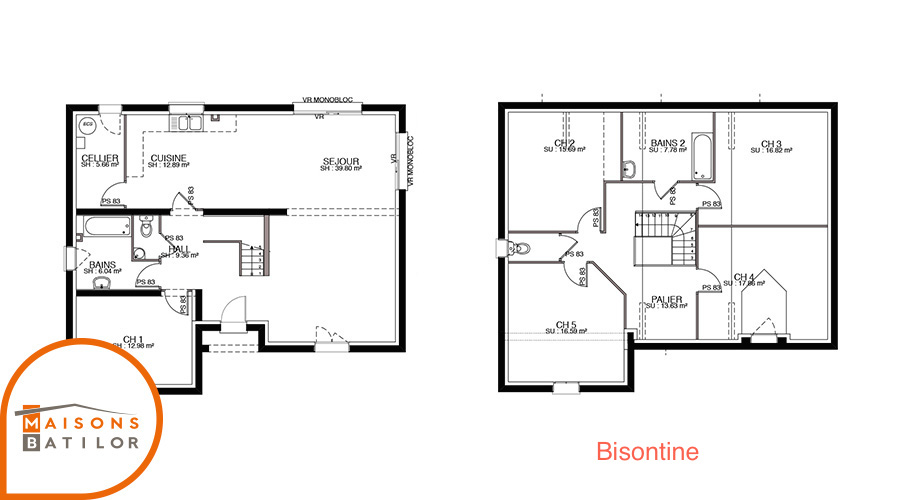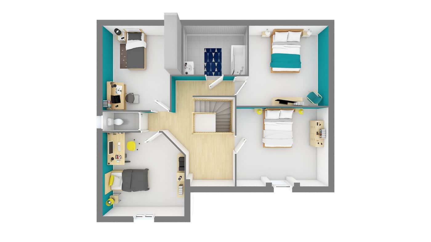 Cette maison chic disponible en 149m² et 183m² est composé d’un étage construit autour d’une charpente traditionnelle donnant accès à une salle de bain ainsi qu’à 4 grandes chambres.