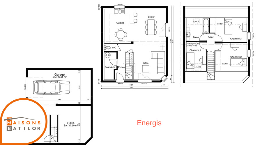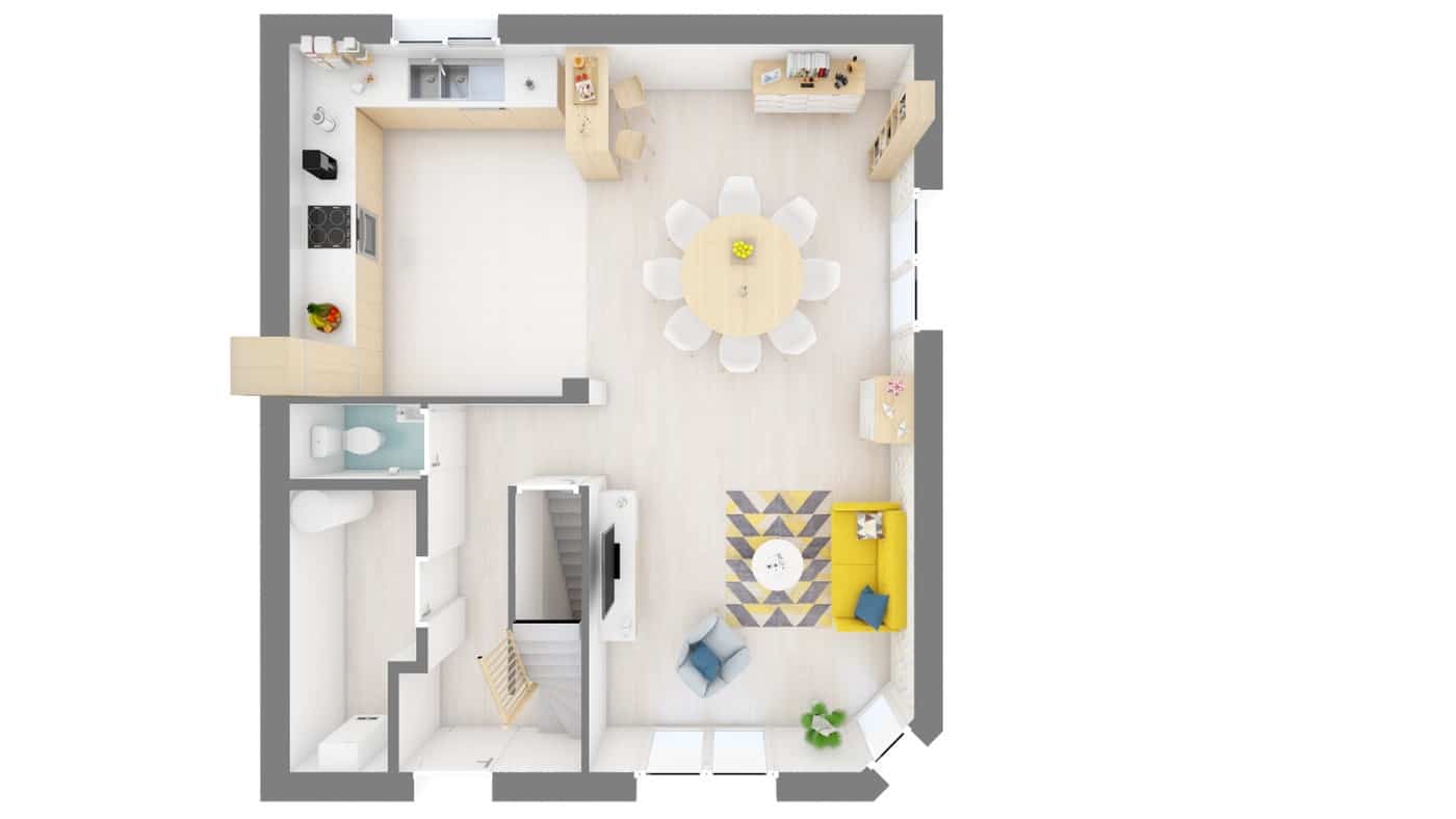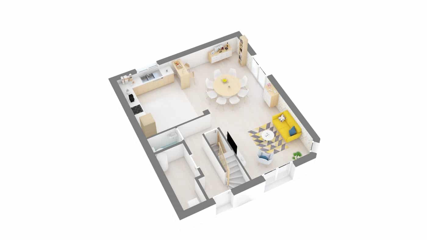 Particulièrement adaptée aux petites surfaces de terrains. Le modèle Energis vous offre à la fois une pièce de vie confortable et un espace nuit tranquille à l’étage.