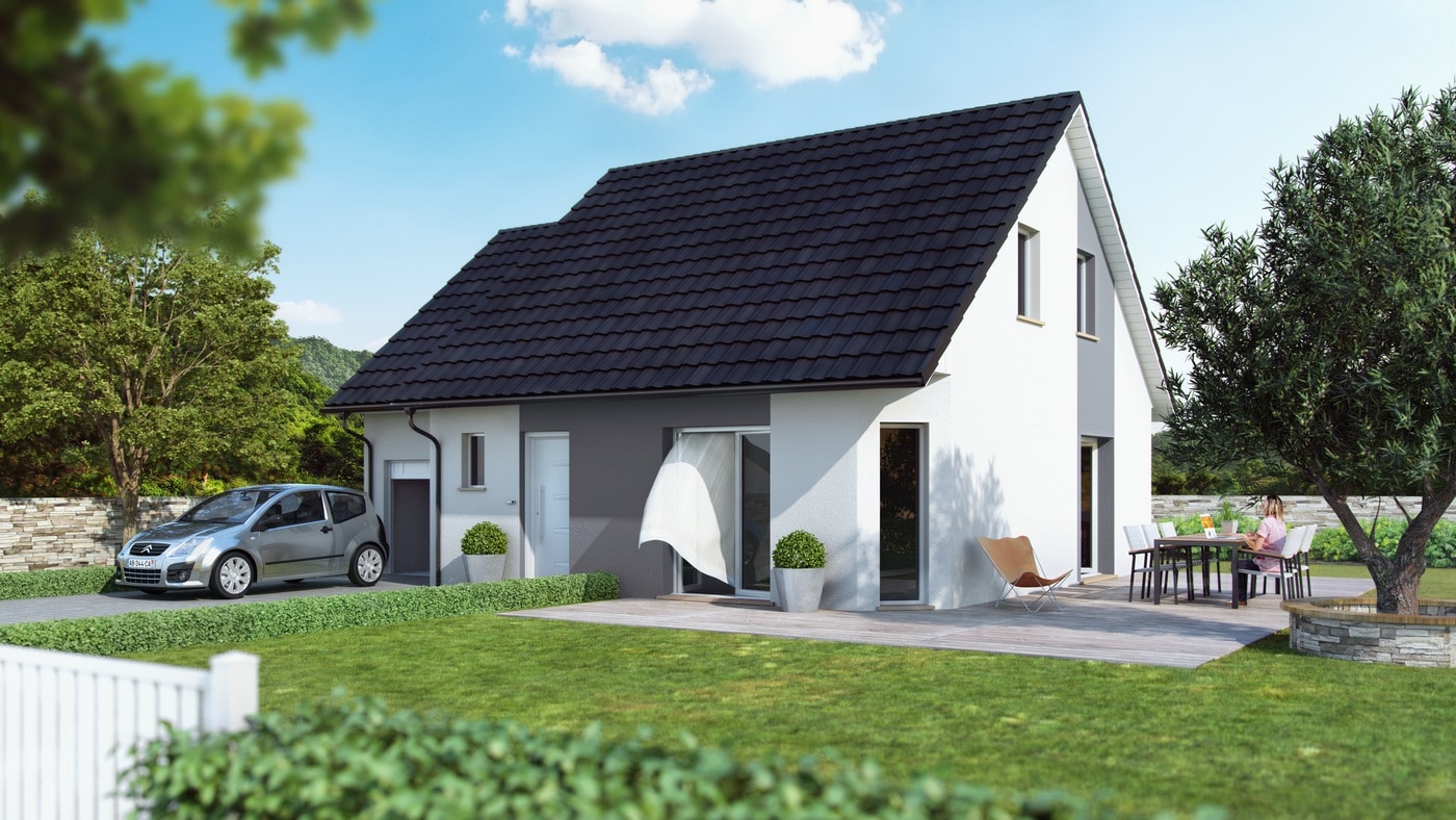 100 % conforme à la réglementation thermique 2020 ( RE2020 ), cette maison basse consommation à étage est disponible en 97m² ou 100m² avec 3 chambre et garage intégré.