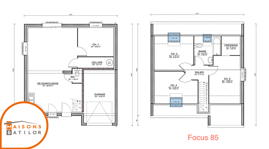 Maisons Batilor vous propose la Focus 85, modèle à étage de notre gamme Petit prix destiné aux primo-accédants.