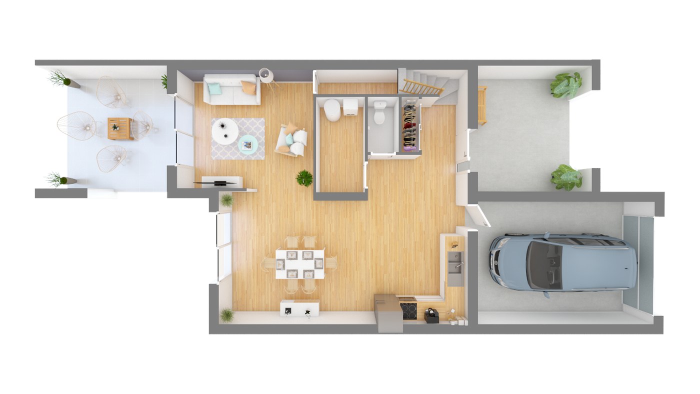 Cette maison de ville possède un grand séjour cuisine au Rez-de-Chaussée et 2 à 4 chambres à l’étage ! une garage accolé est inclus de base !