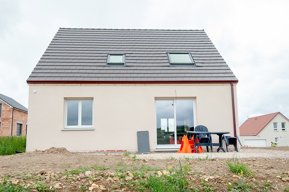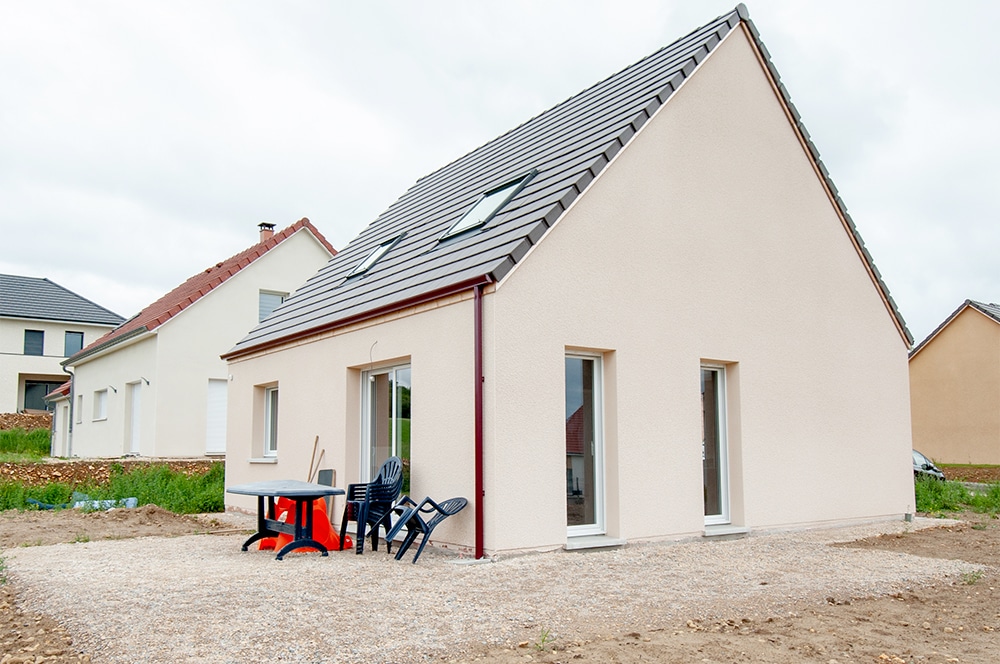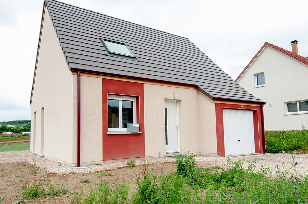 Voici une de nos réalisations, à Freshes-le-Château dans le Doubs. Elle séduit par son look coloré et original, son toit à deux pans en ardoise. Grâce à sa petite surface au sol elle tient sur un terrain exigu. Pour autant, son intérieur sur deux niveaux offre tout le confort nécessaire et son agencement bien pensé en font une maison très agréable.